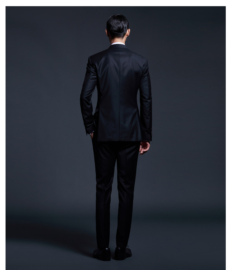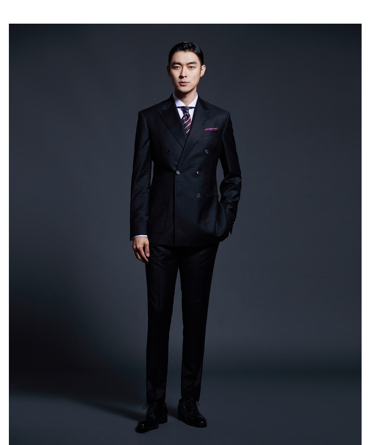 最让我印象深刻的是选面料环节吧,着装顾问询问了我的着装需求,然后给我推荐色系和布料。其实这一步很重要,一定要及时把自己的想法和着装顾问沟通,这样才能选出适合自己的舒适西装。我定制的这套西装是深藏青色的,选了藏青色是因为它给人很低调深沉的感觉,这种颜色也比较显白。它的整个版型设计我也比较满意,选了双排扣的设计能更好地修饰身形。